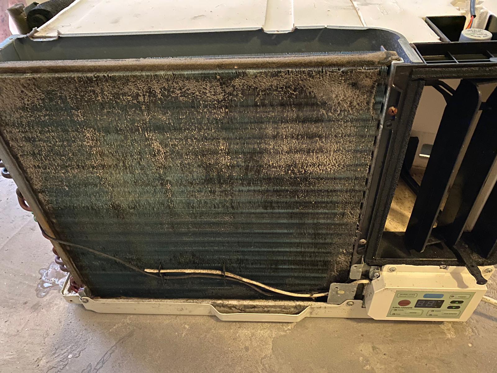 Window air conditioner cleaning job at a residential unit in Kennedy Town, Hong Kong